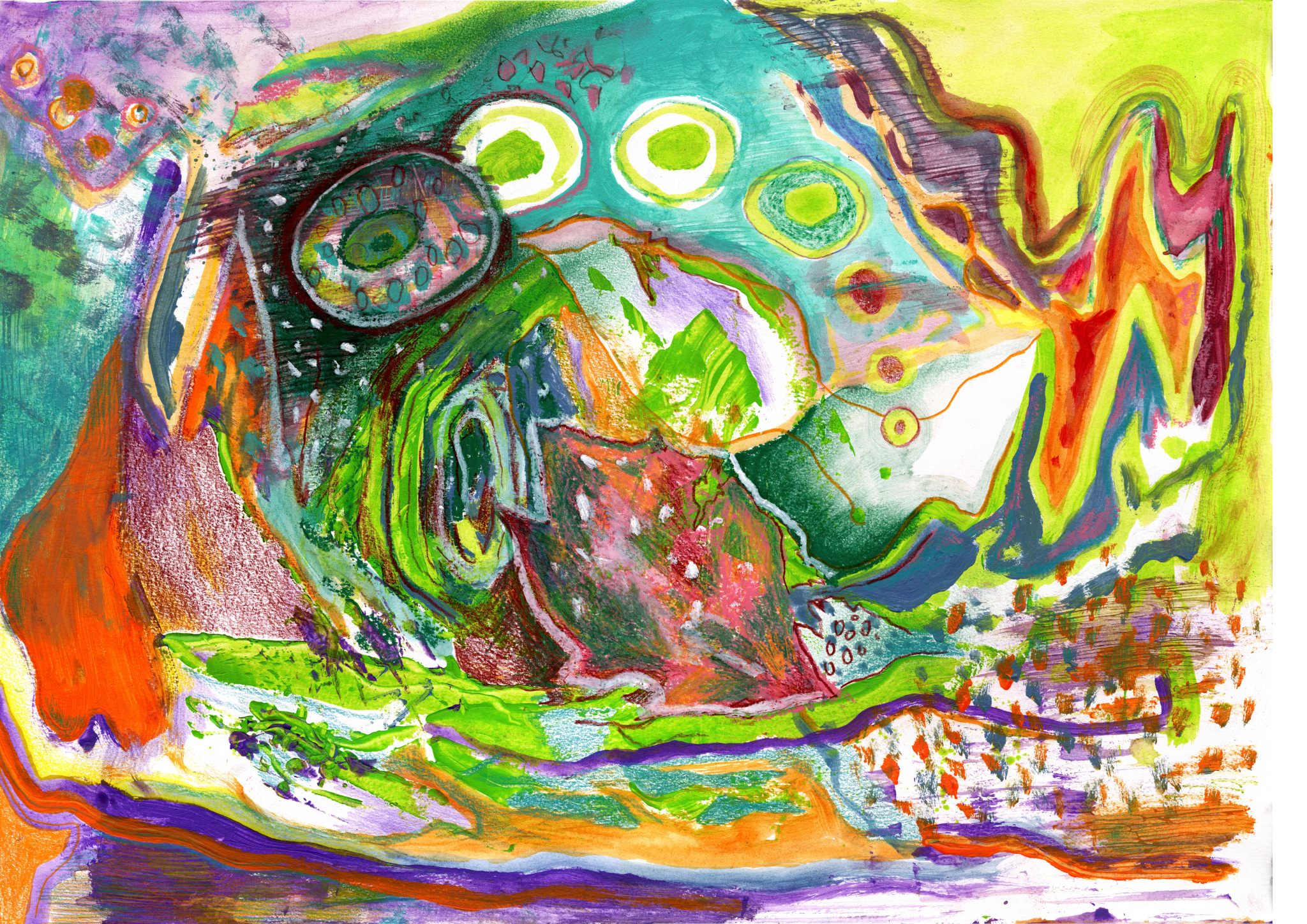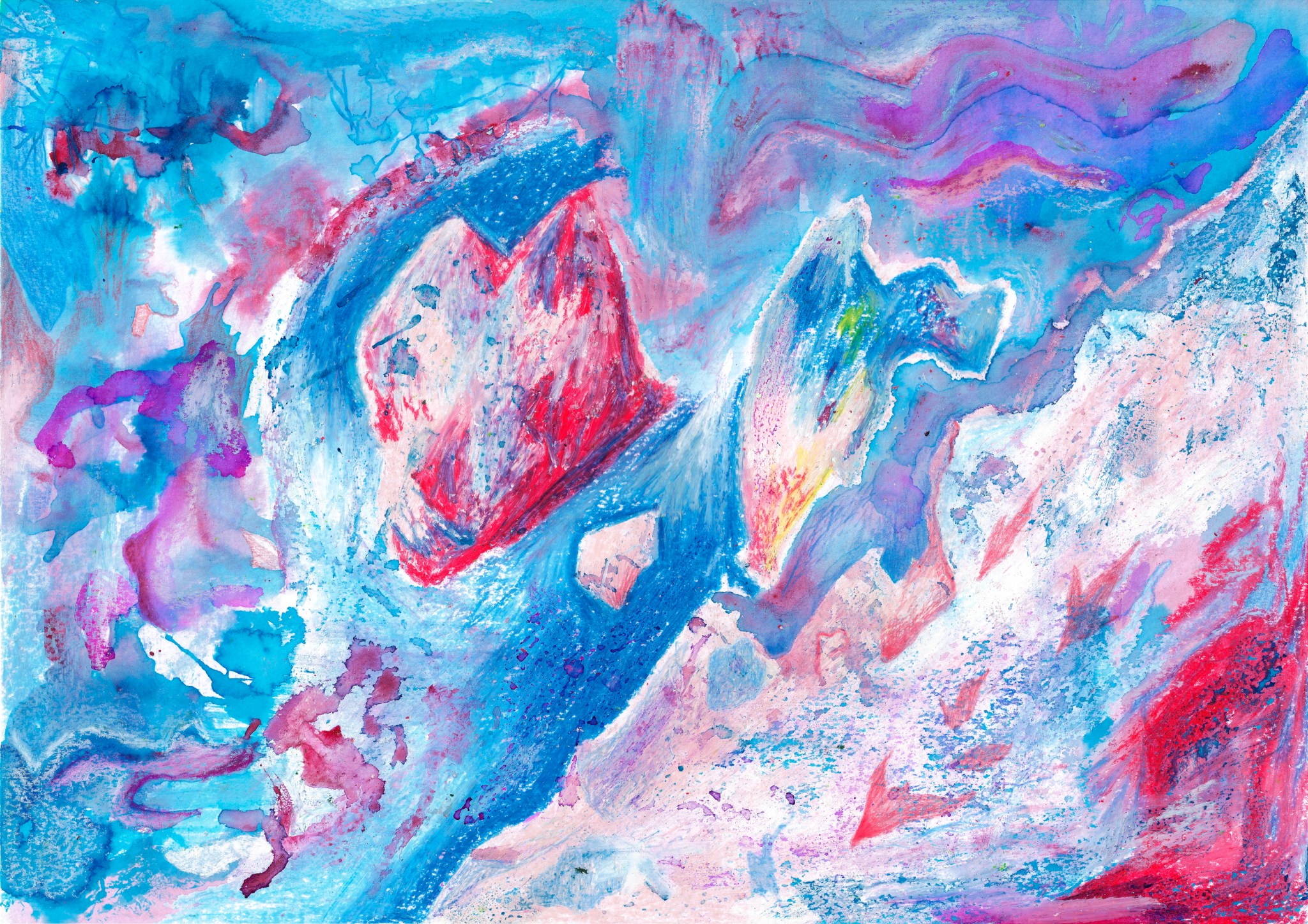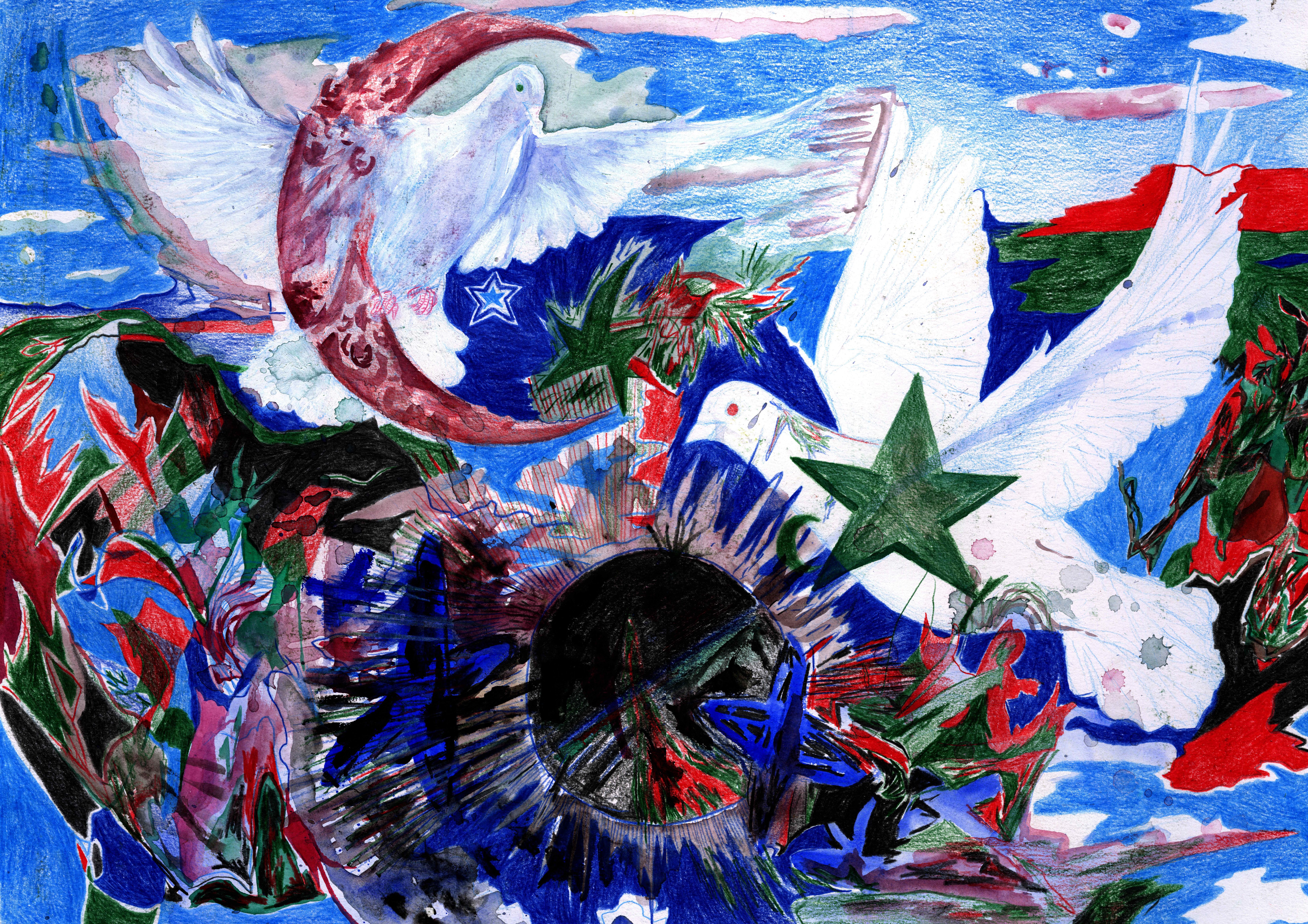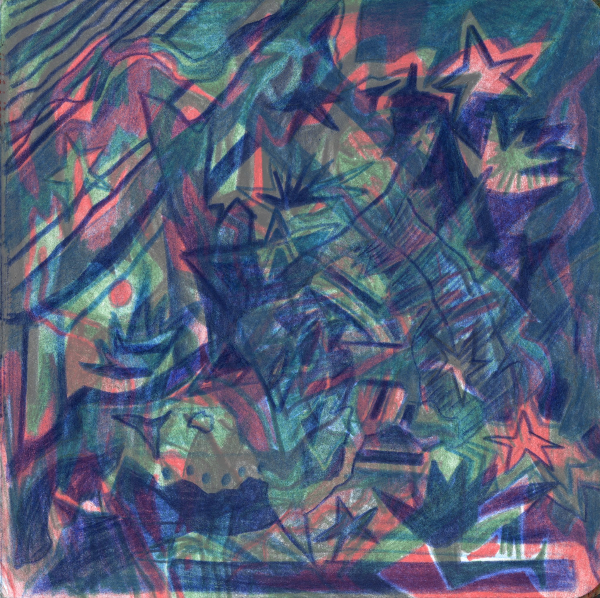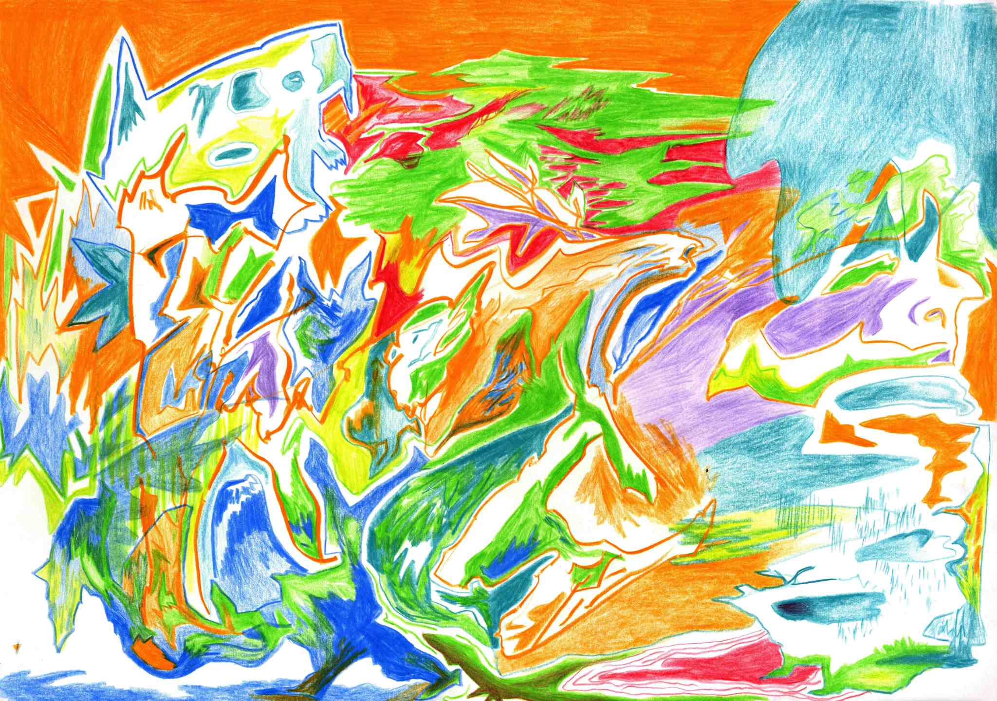 Kaosplastokdanceplastikworld, crayons de couleurs sur papier, 59,4 x 42 cm, 2023