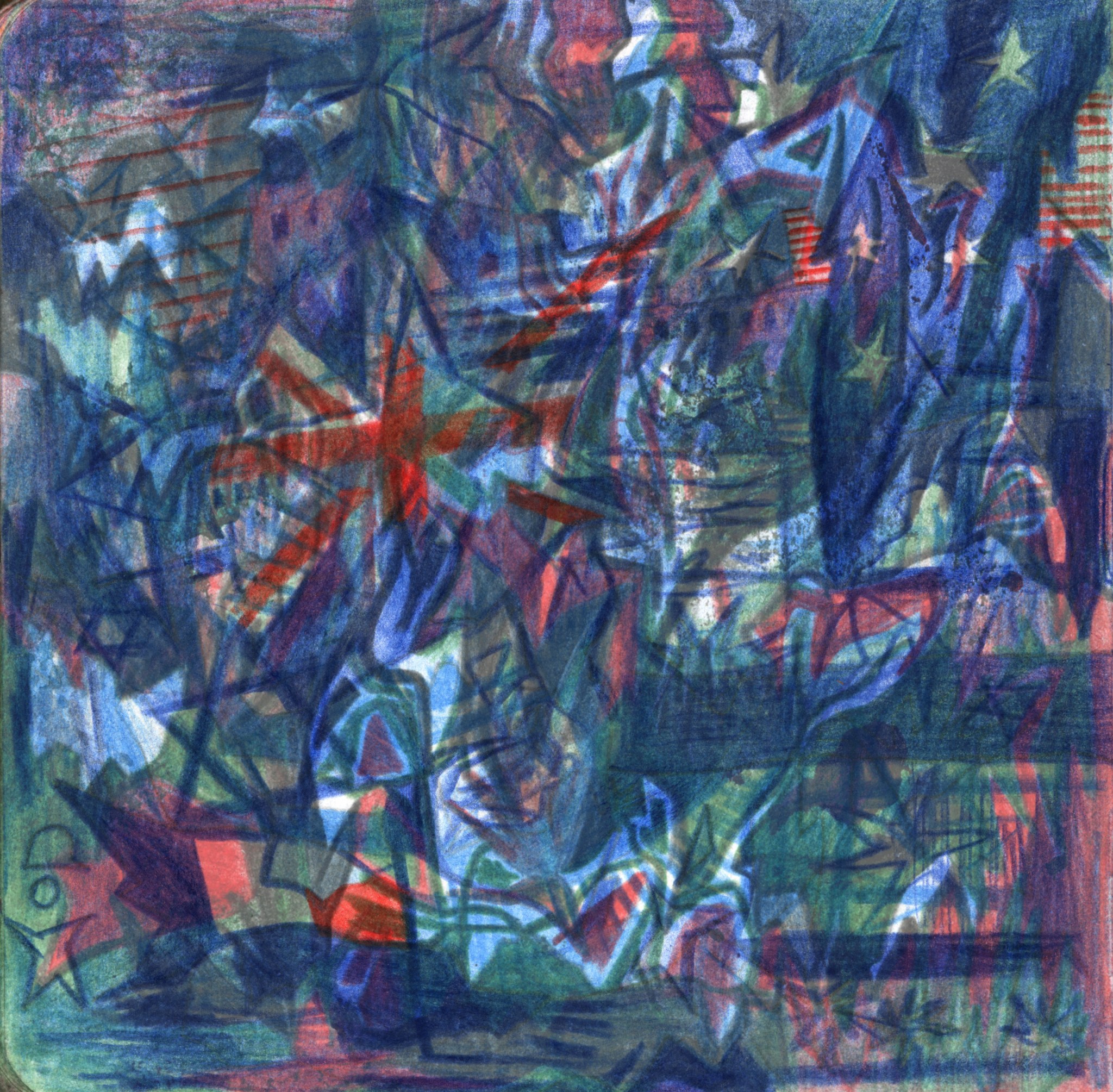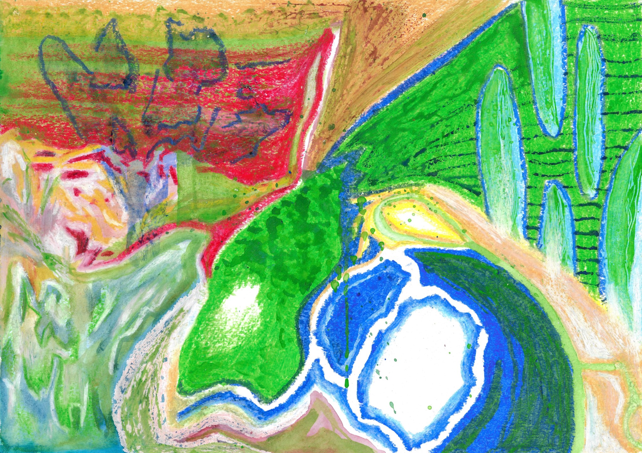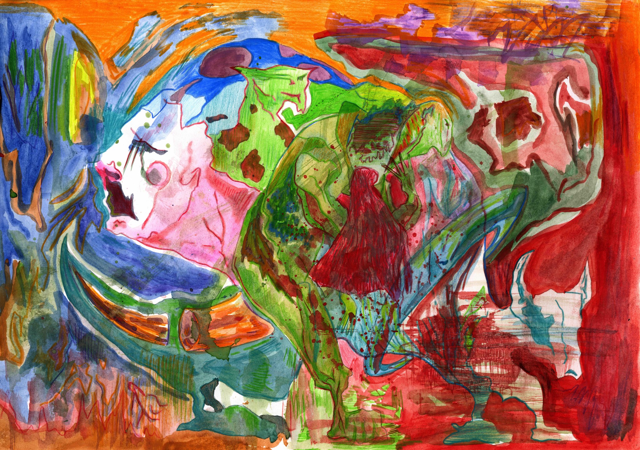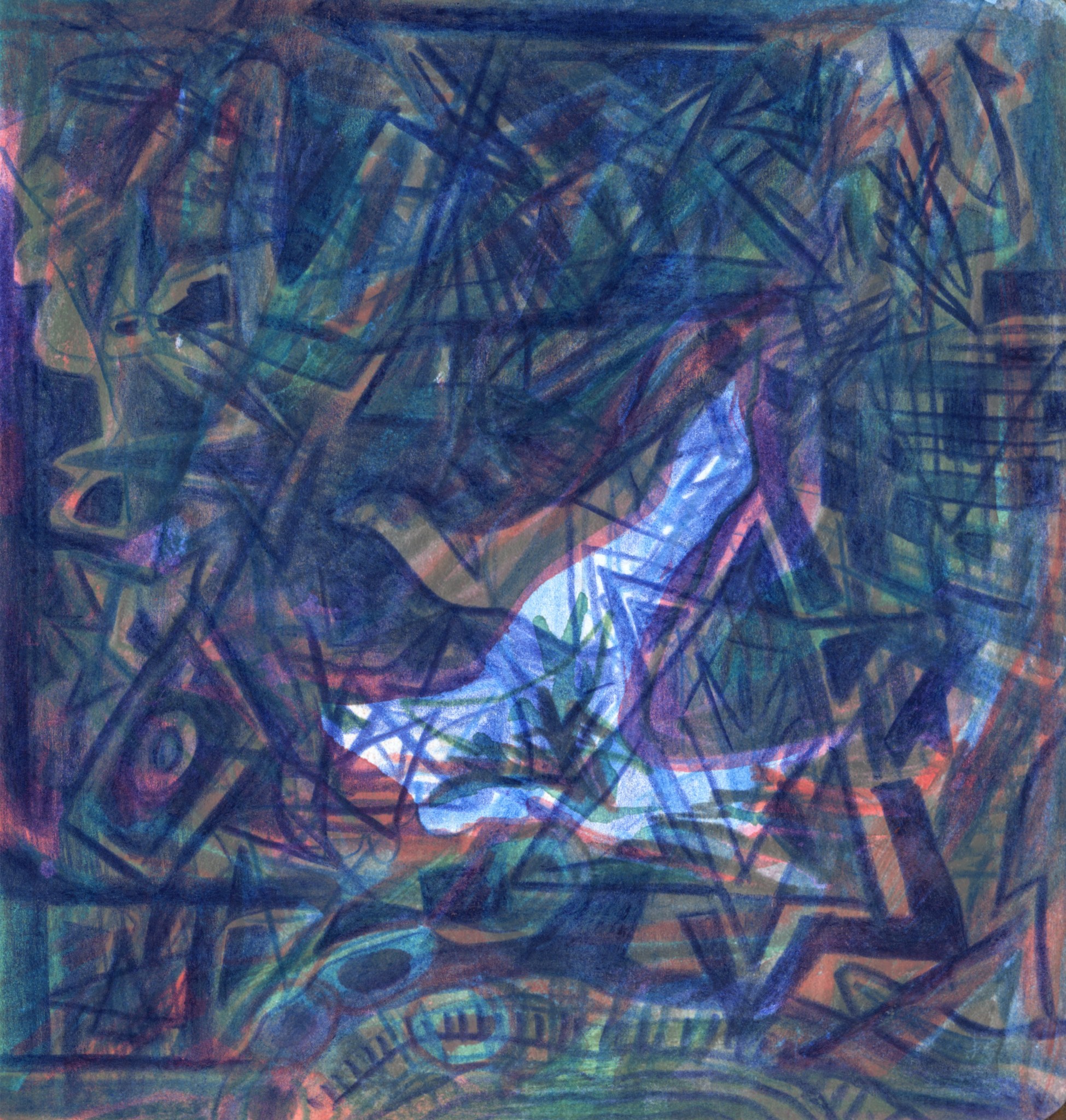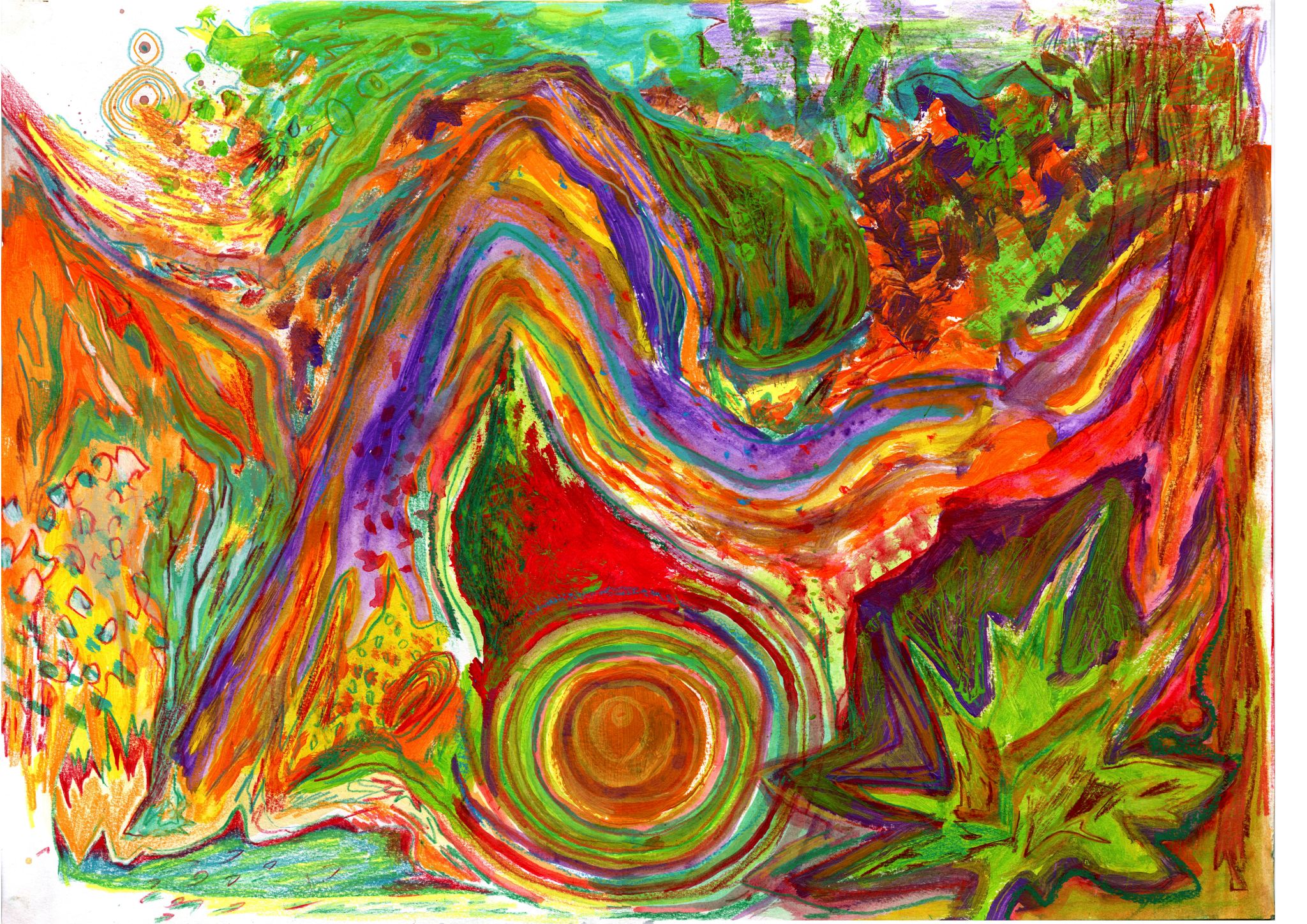 Kaosplastokdanceplastikworld, crayons de couleurs sur papier, 59,4 x 42 cm, 2023