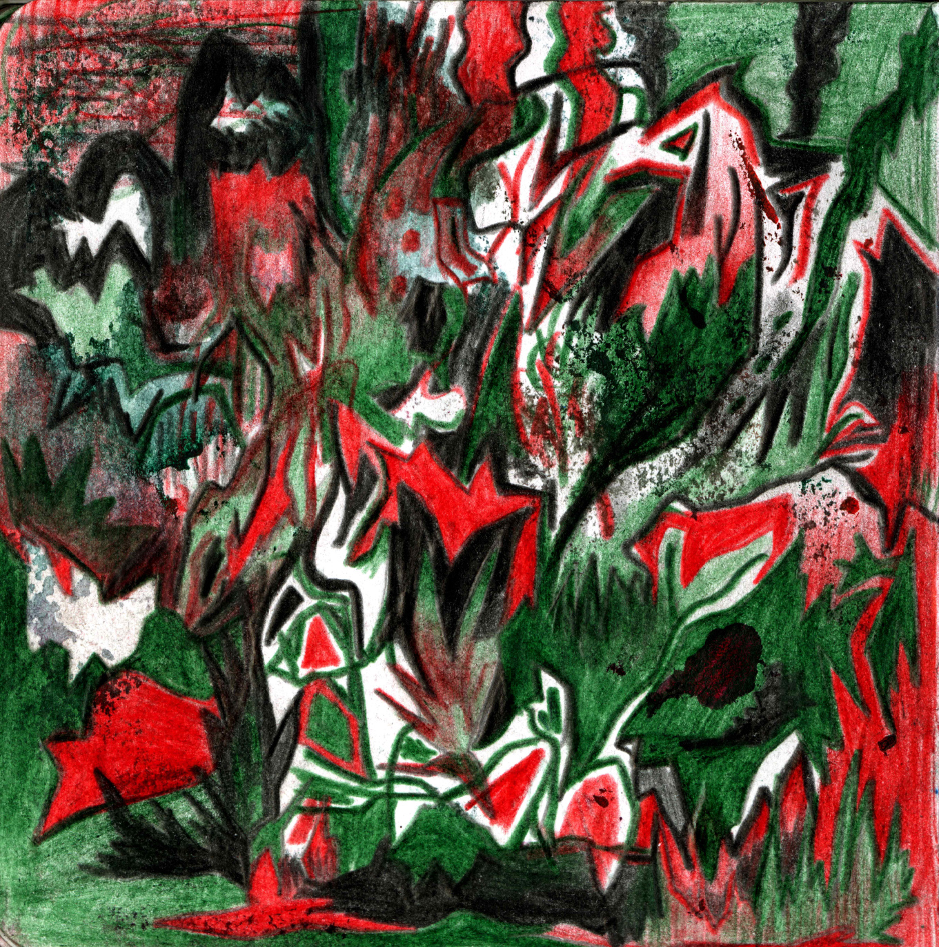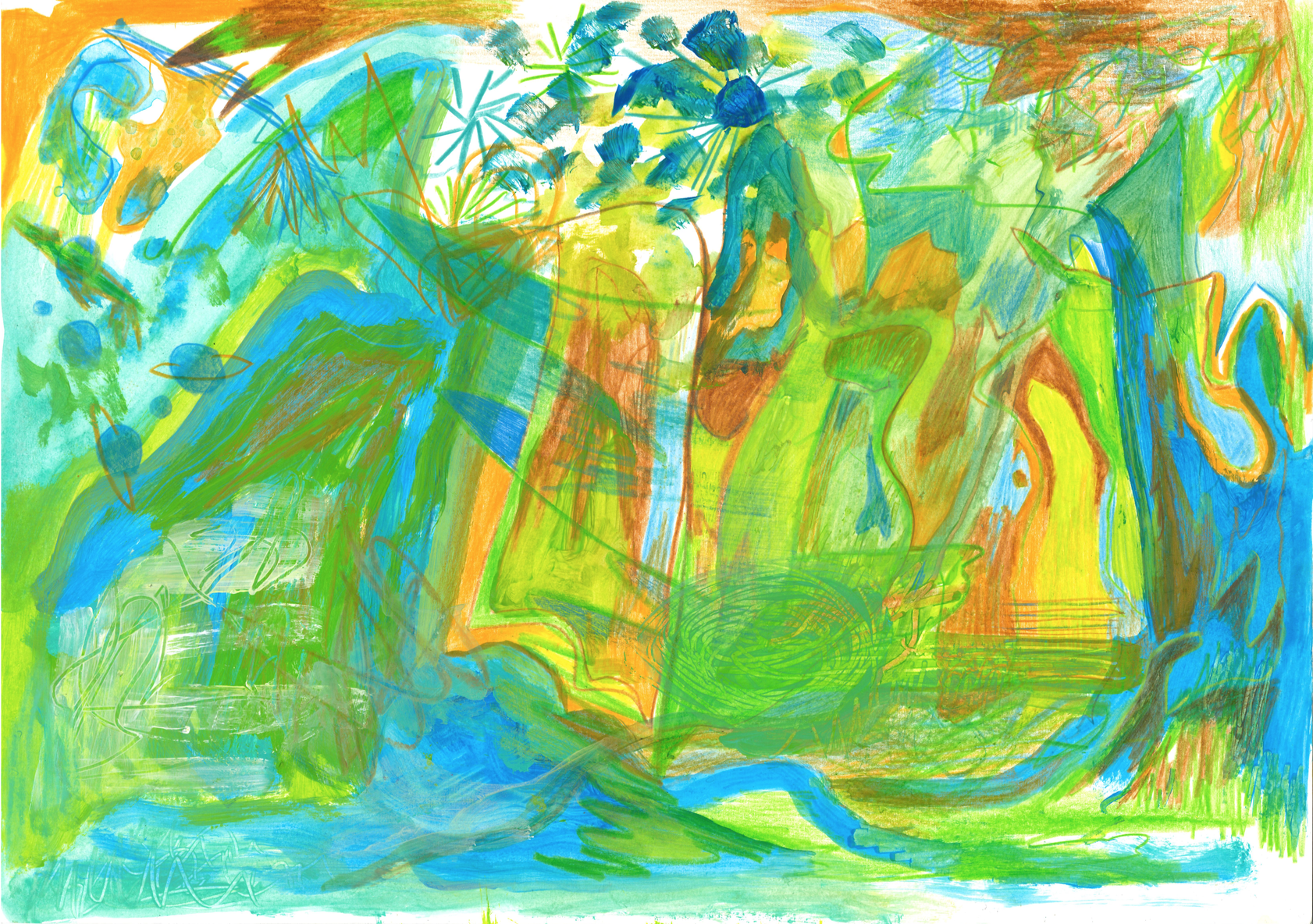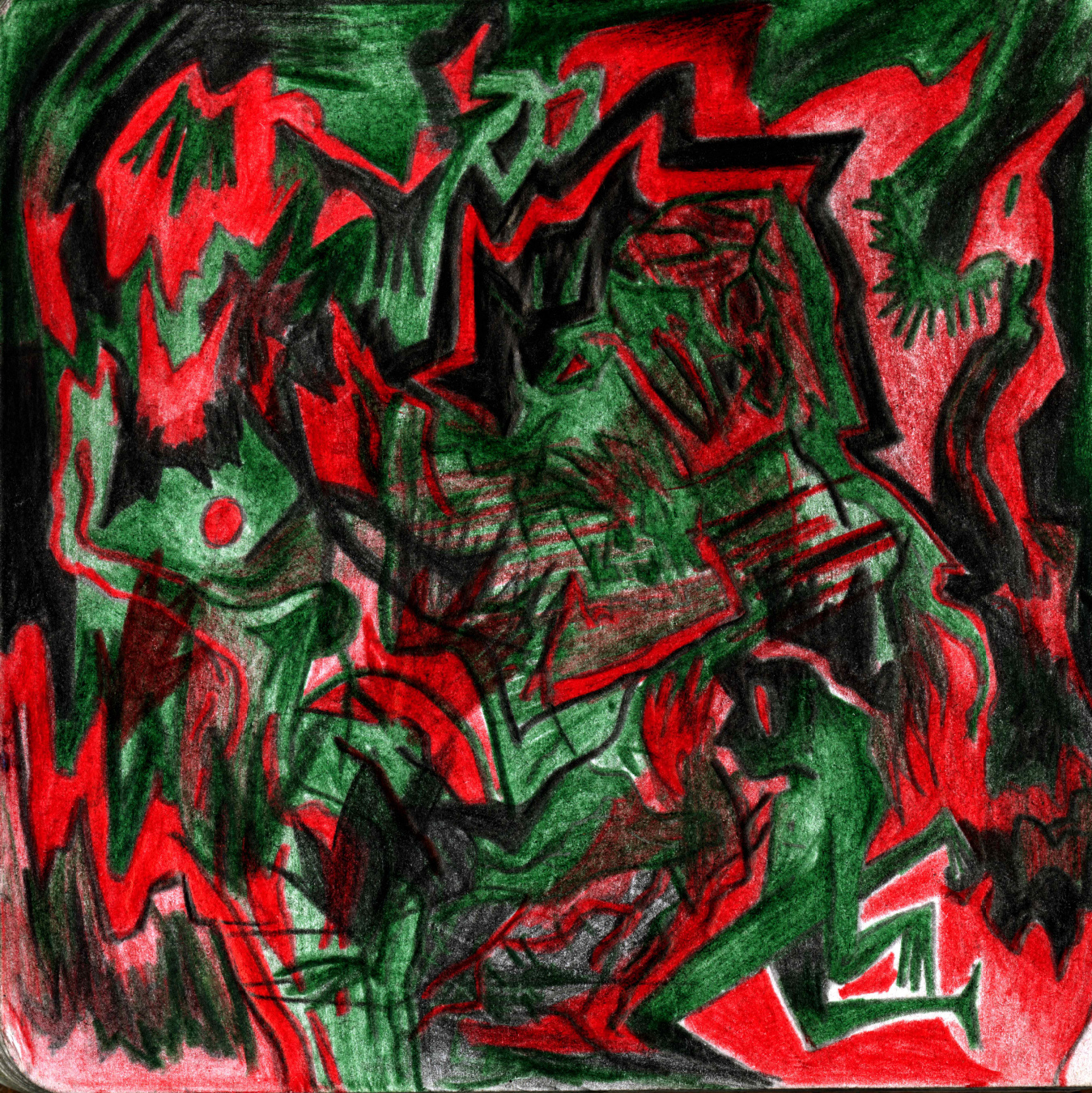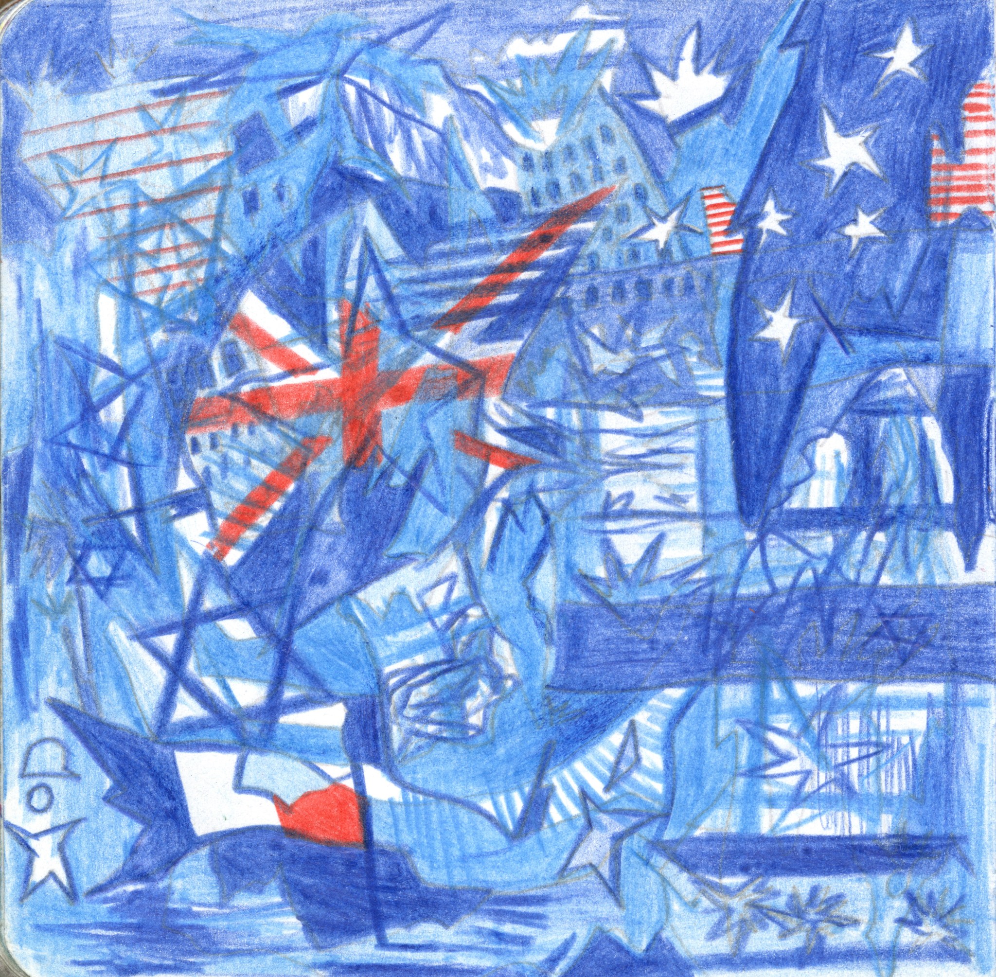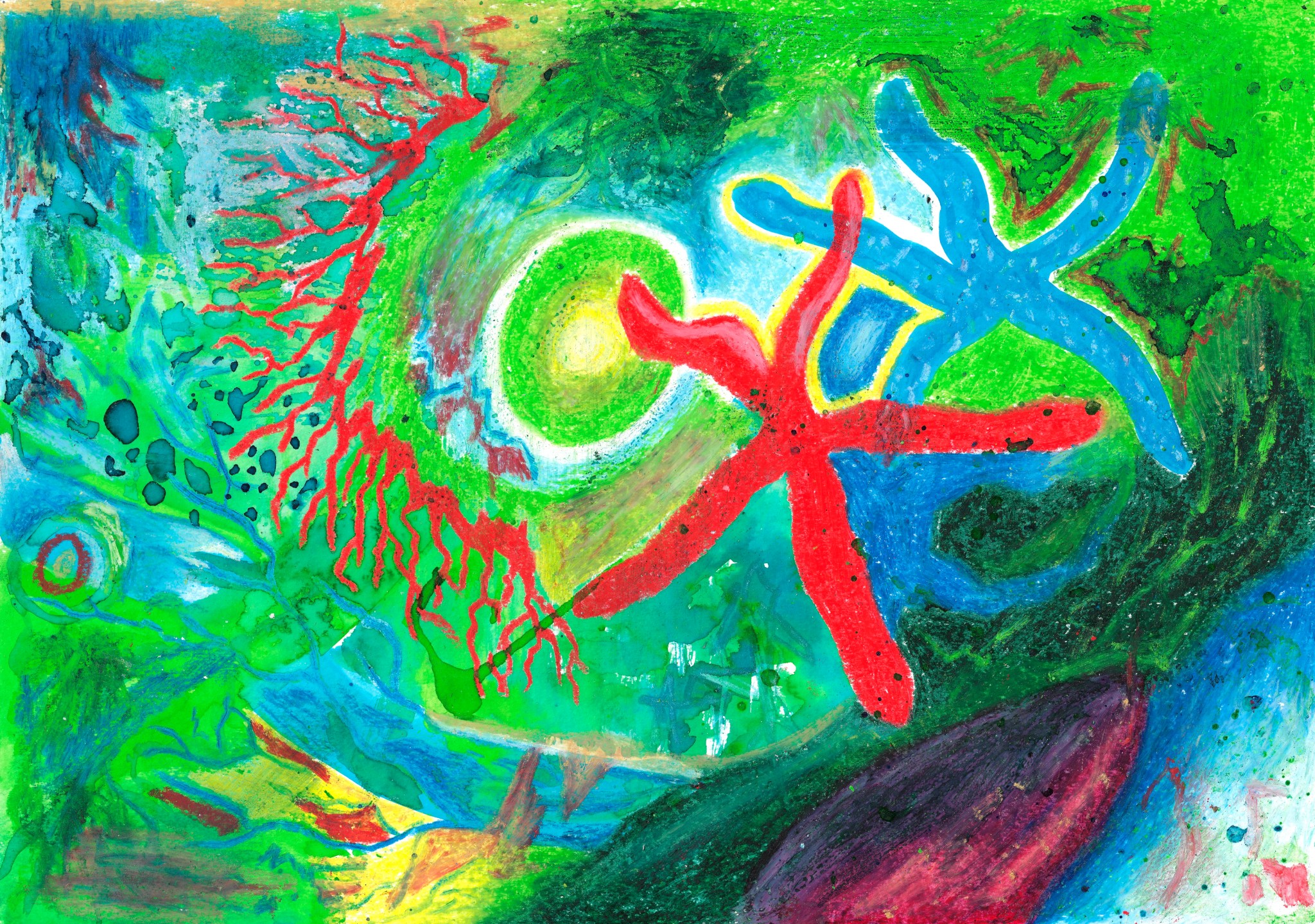Kaosplastokdanceplastikworld, crayons de couleurs sur papier, 59,4 x 42 cm, 2023