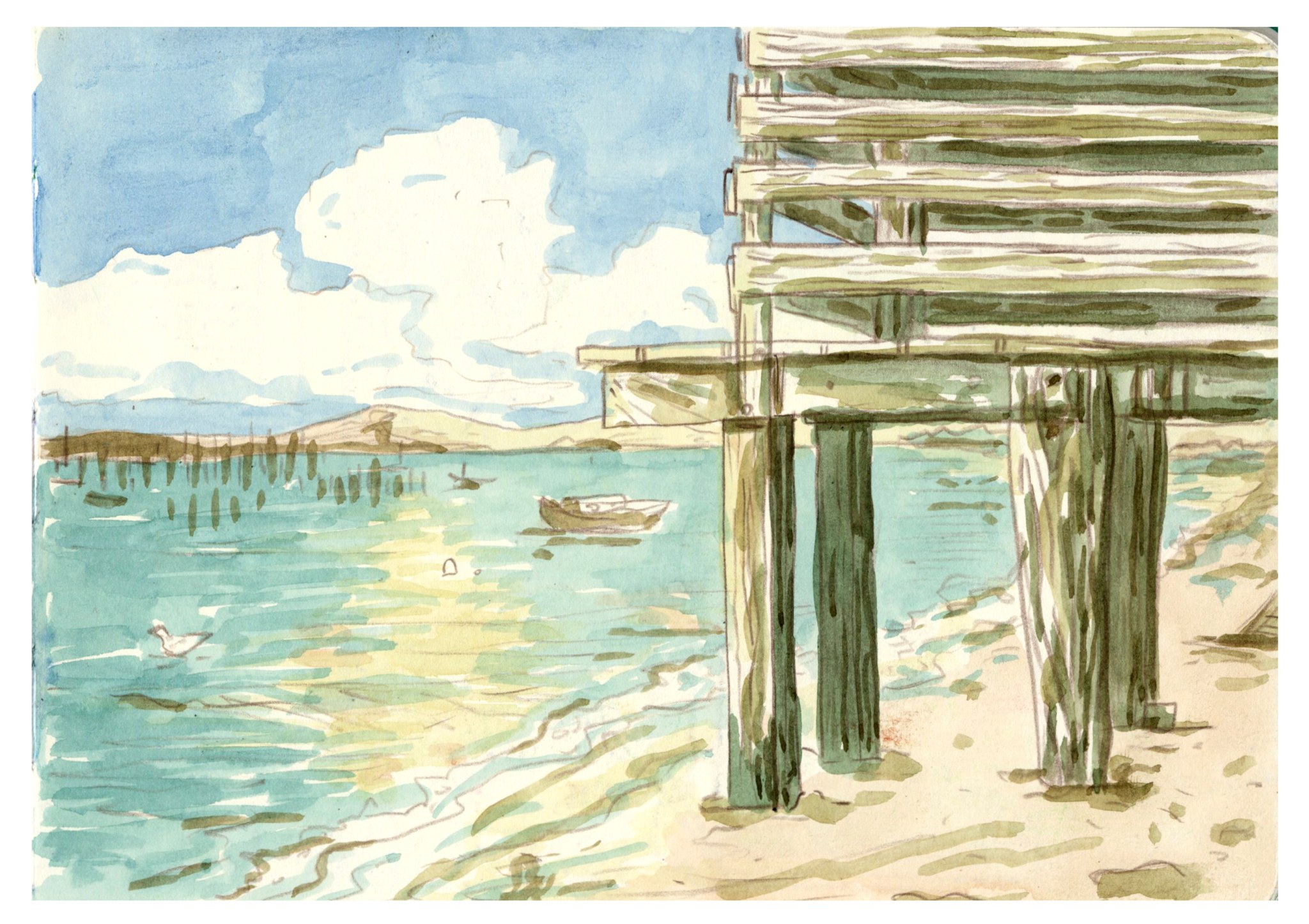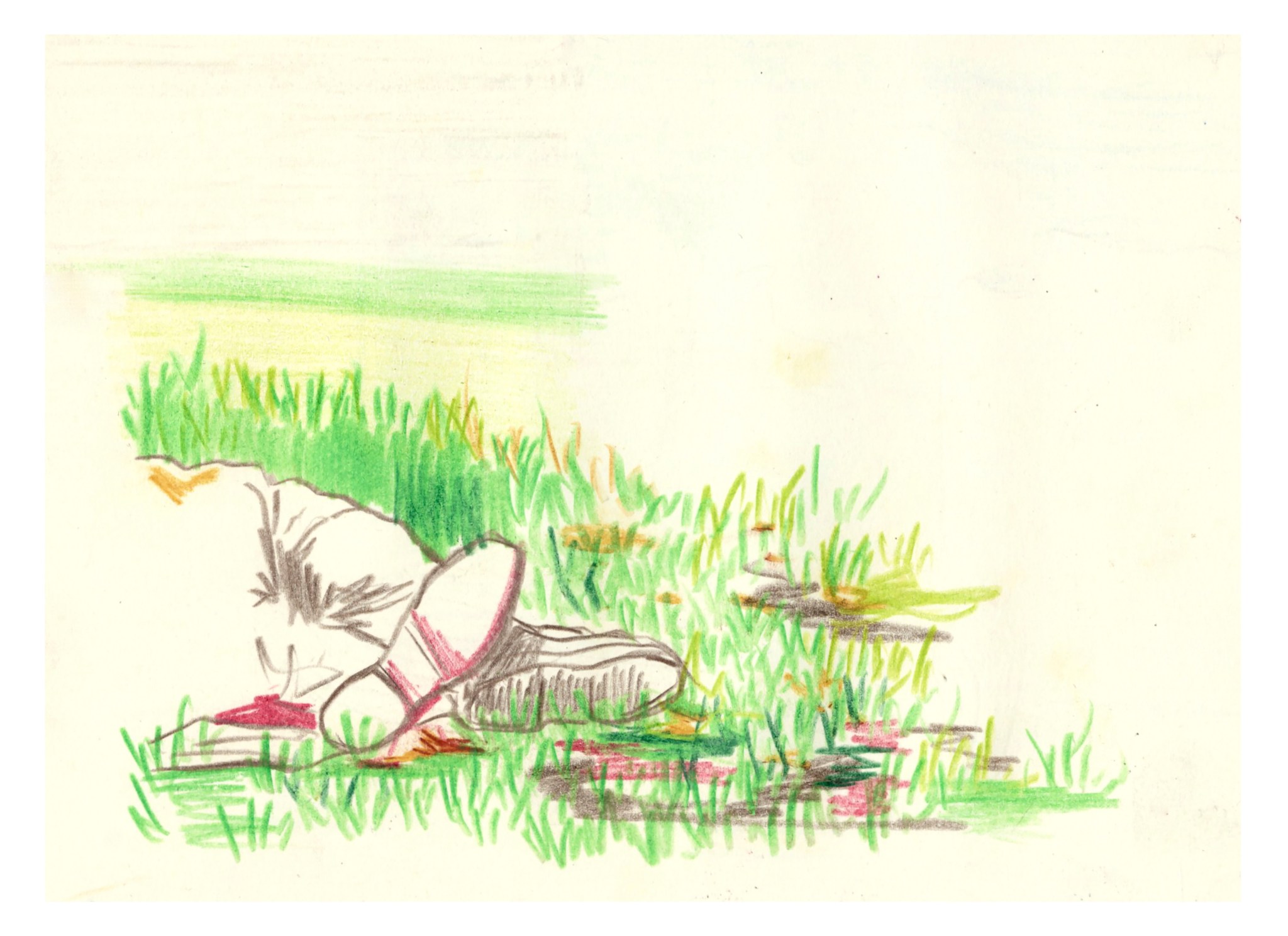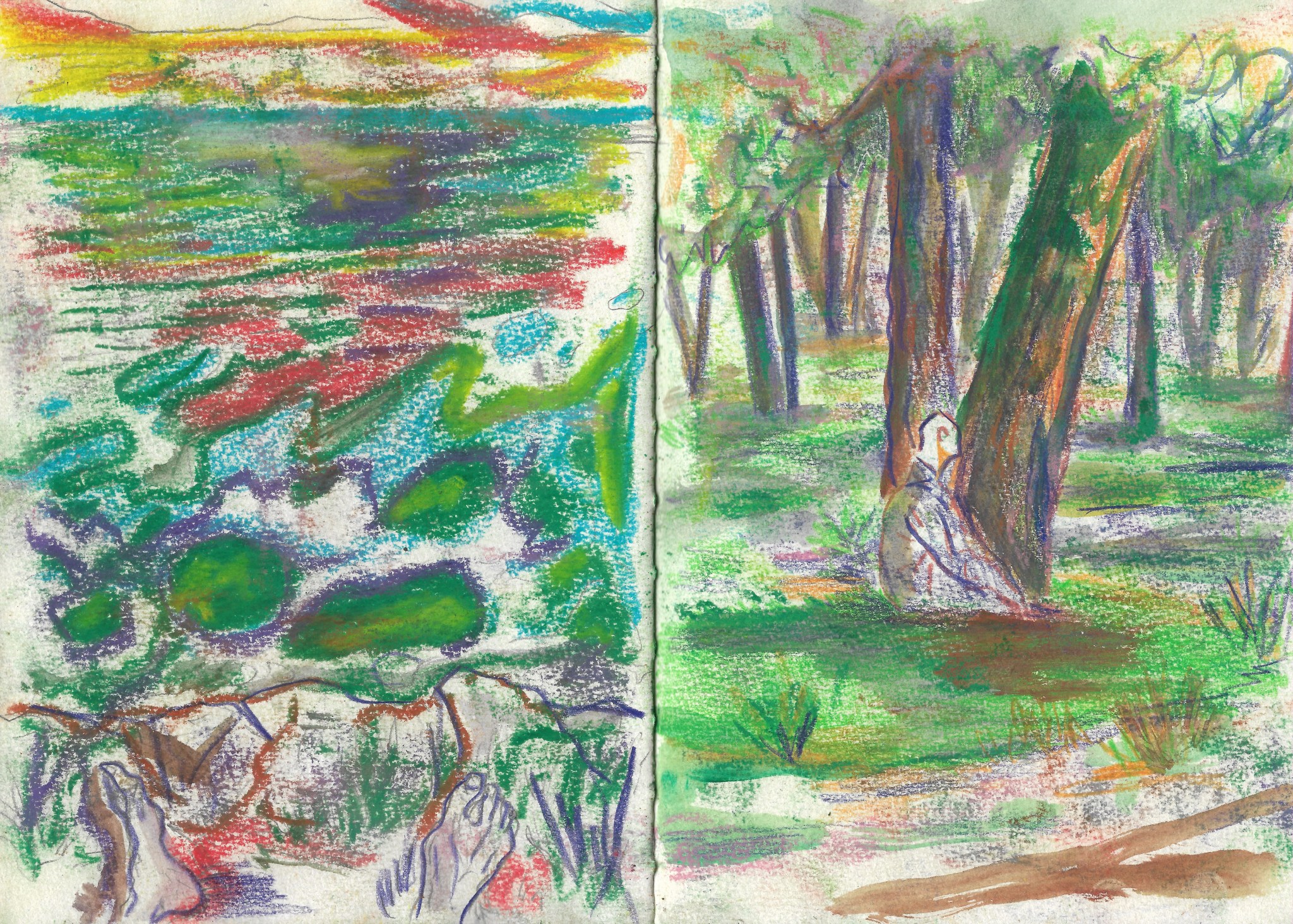 La sieste, crayons de couleurs, dessin original tiré d’un carnet de voyage format A5 (14,8 x 21 cm), 2022