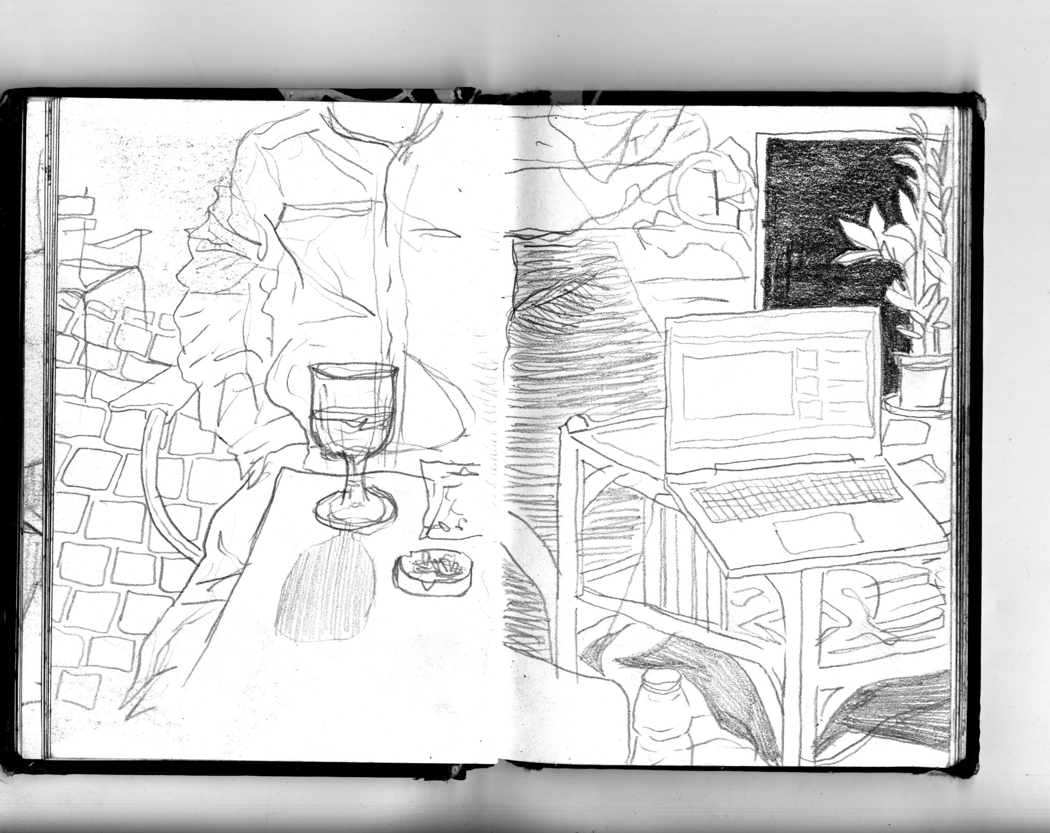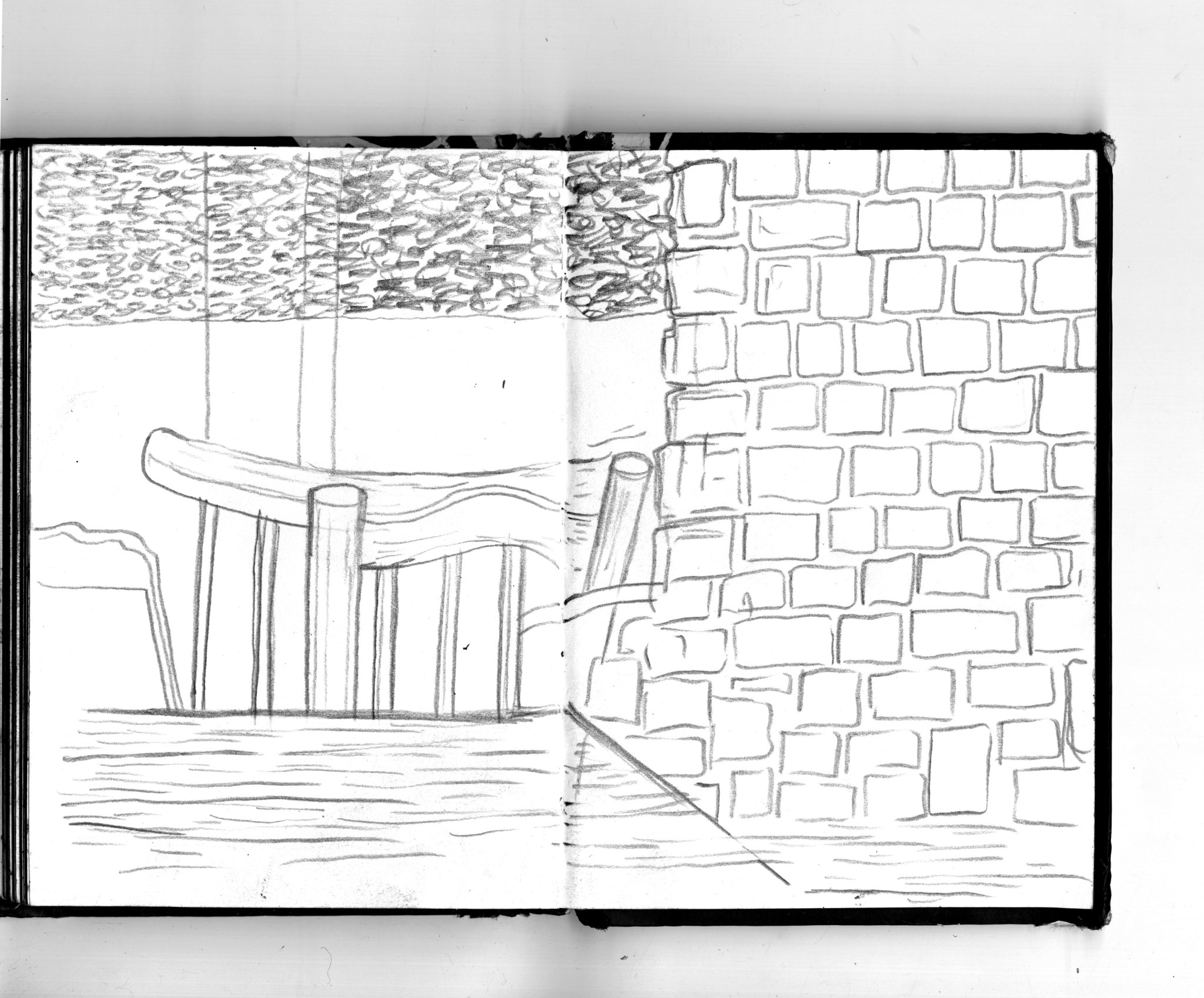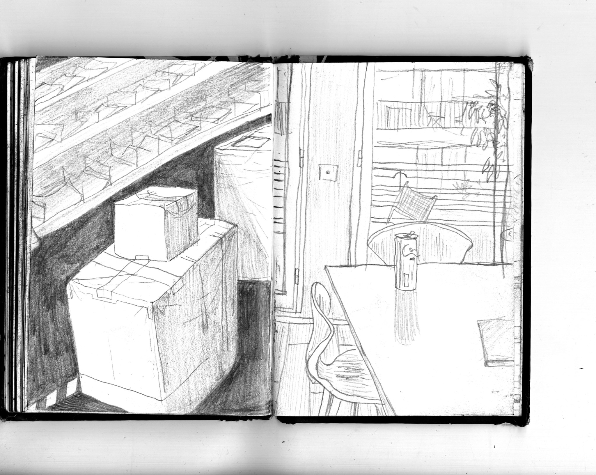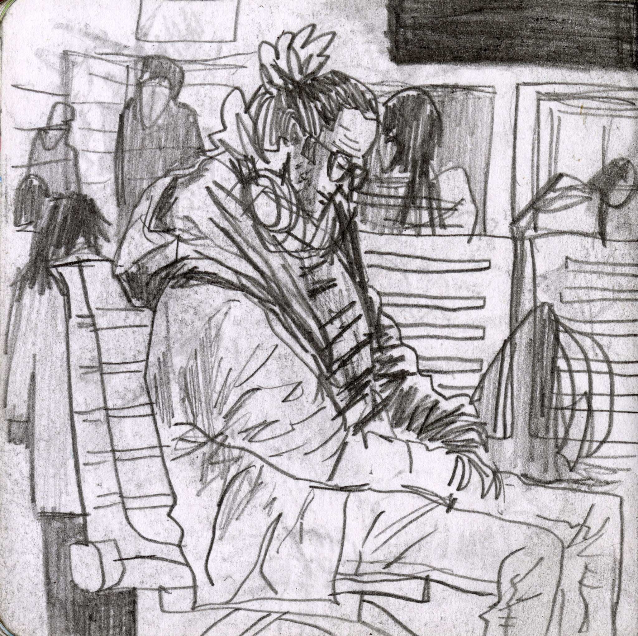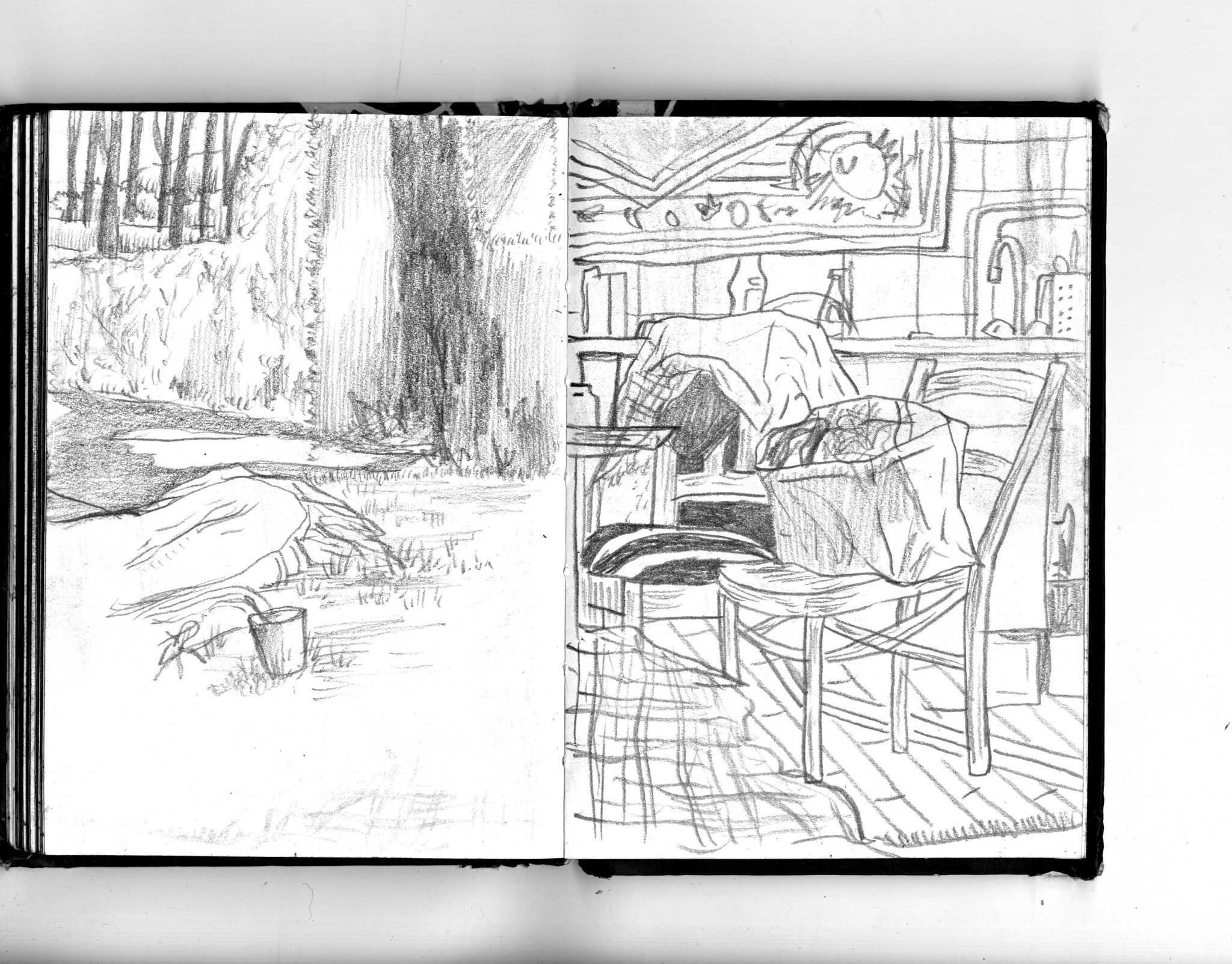 En janvier 2024 je décide de rendre viste à une amie à Londres. Alors que je suis arrivé depuis quelques heures, j’achète ce petit carnet A6 au Tate Modern Museum après avoir vu quelques expositions, dont une des peintures de Philipp Guston. Un soir j’ai manqué de peu de perdre ce carnet dans un bar de Piccadilly Circus. J’ai été le lendemain et heureusement, ils avaient bien gardé le carnet. Il m’avait fallu quand même un peu d’efforts pour retrouver l’enseigne du bar. Après ce week-end à Londres, j’ai décidé de pratiquer uniquement le dessin figuratif au crayon graphite jusqu’à remplir entièrement le carnet. De retour à Bruxelles je l’ai donc rempli pendant un mois à peu près partout où j’allais.
