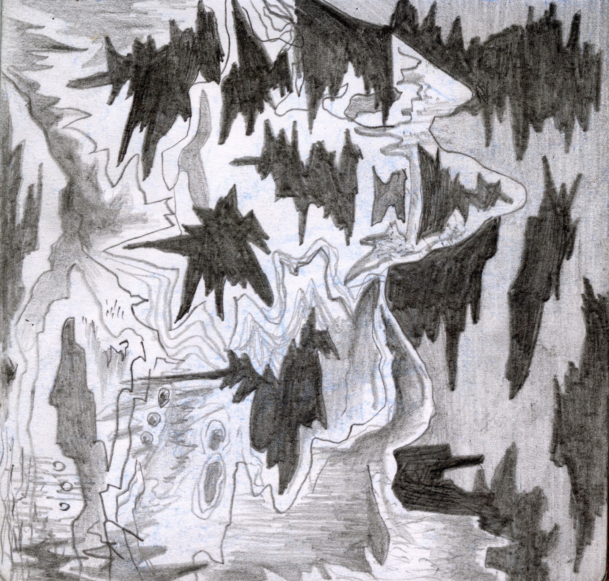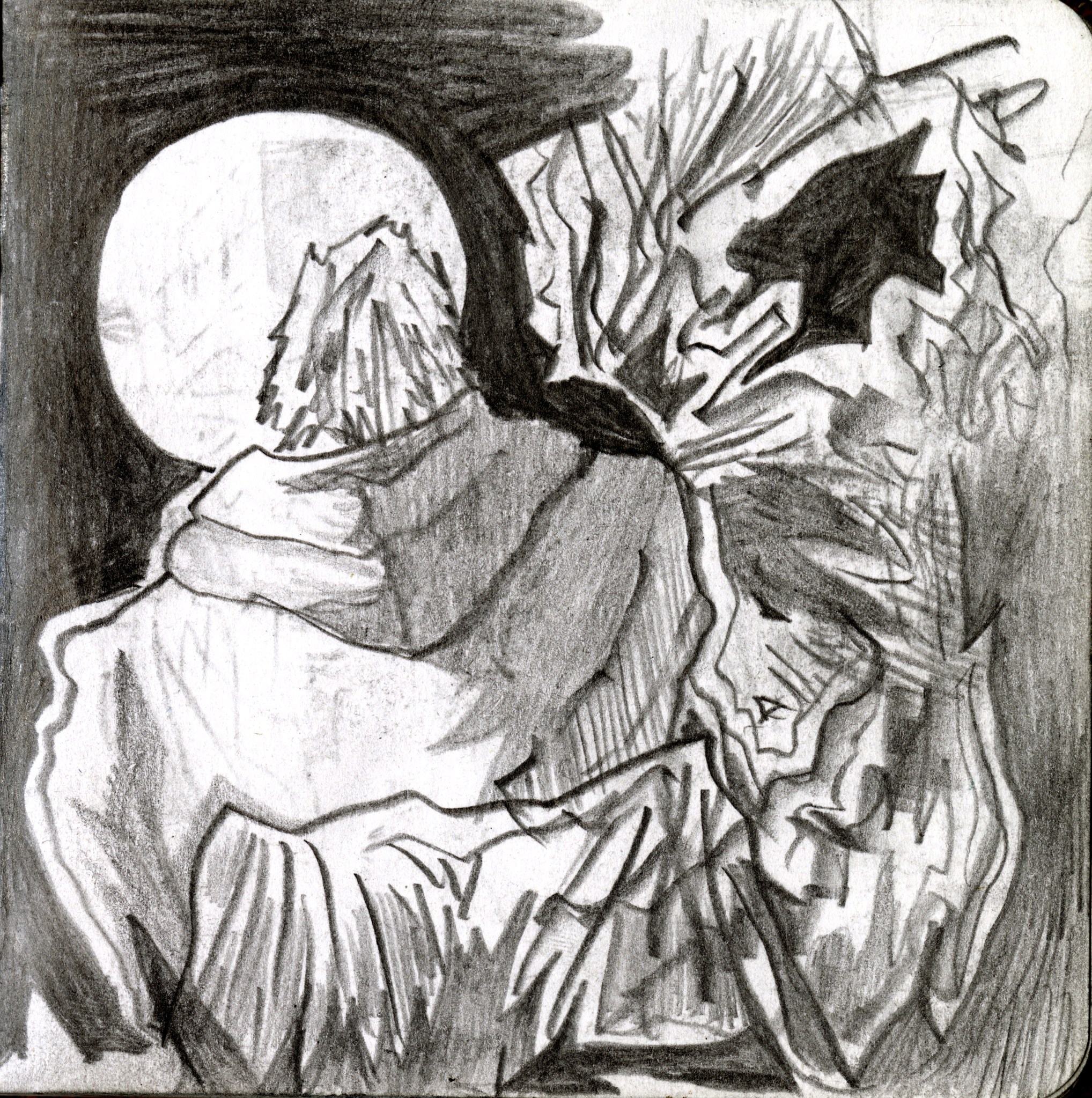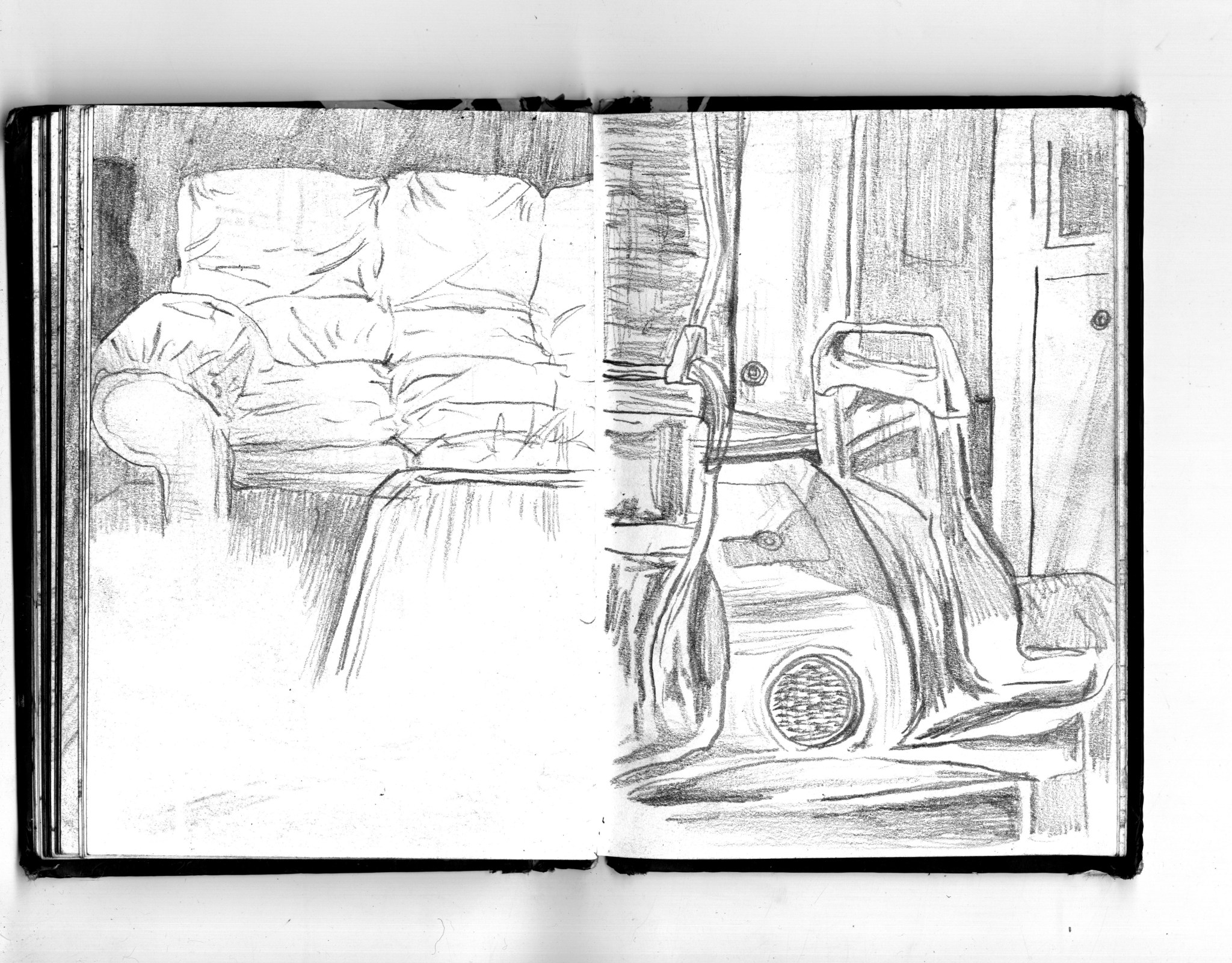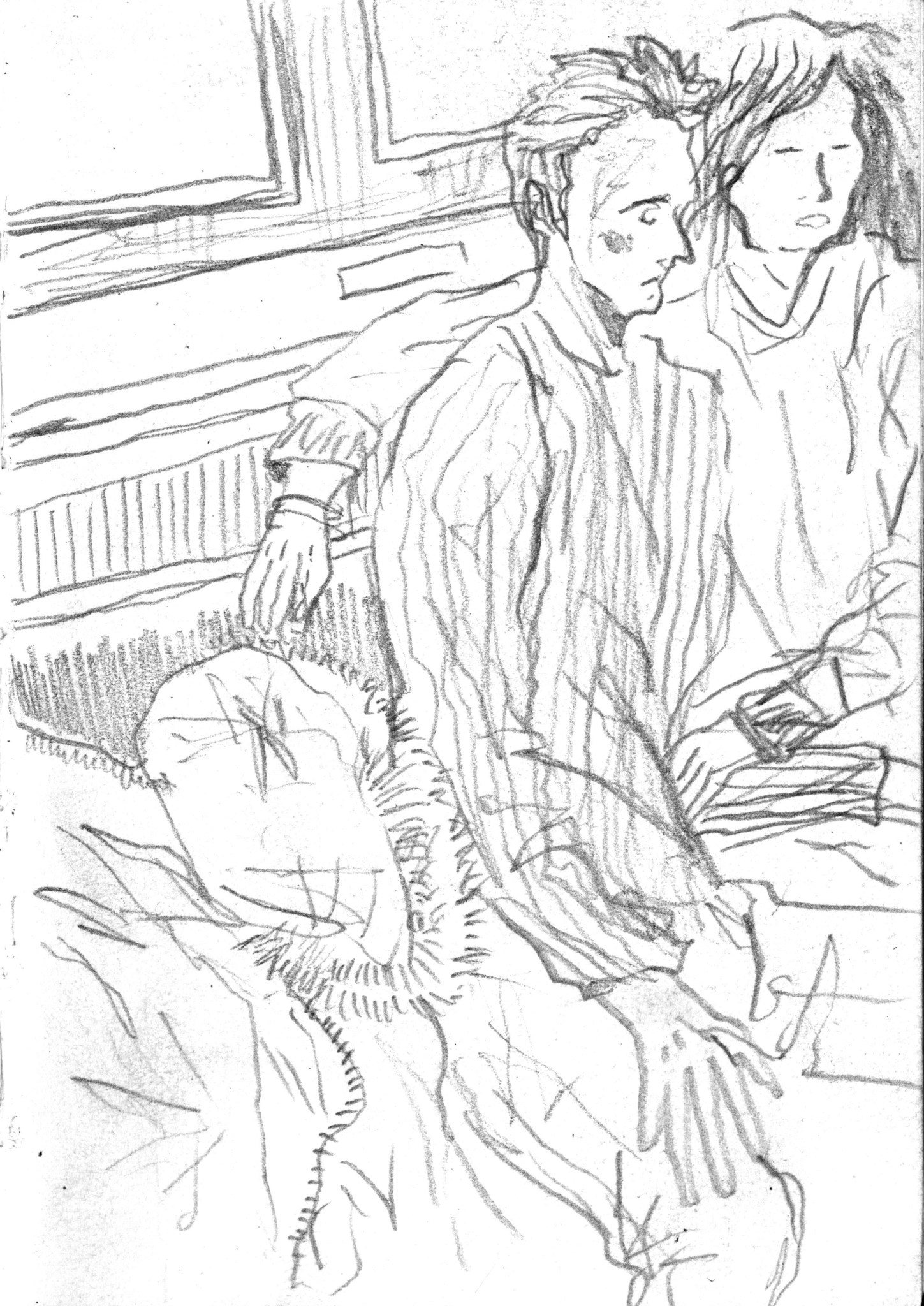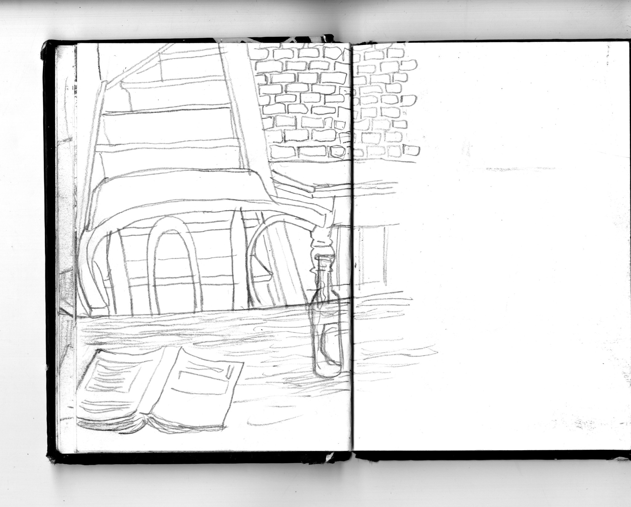 En janvier 2024 je décide de rendre viste à une amie à Londres. Alors que je suis arrivé depuis quelques heures, j’achète ce petit carnet A6 au Tate Modern Museum après avoir vu quelques expositions, dont une des peintures de Philipp Guston. Un soir j’ai manqué de peu de perdre ce carnet dans un bar de Piccadilly Circus. J’ai été le lendemain et heureusement, ils avaient bien gardé le carnet. Il m’avait fallu quand même un peu d’efforts pour retrouver l’enseigne du bar. Après ce week-end à Londres, j’ai décidé de pratiquer uniquement le dessin figuratif au crayon graphite jusqu’à remplir entièrement le carnet. De retour à Bruxelles je l’ai donc rempli pendant un mois à peu près partout où j’allais.