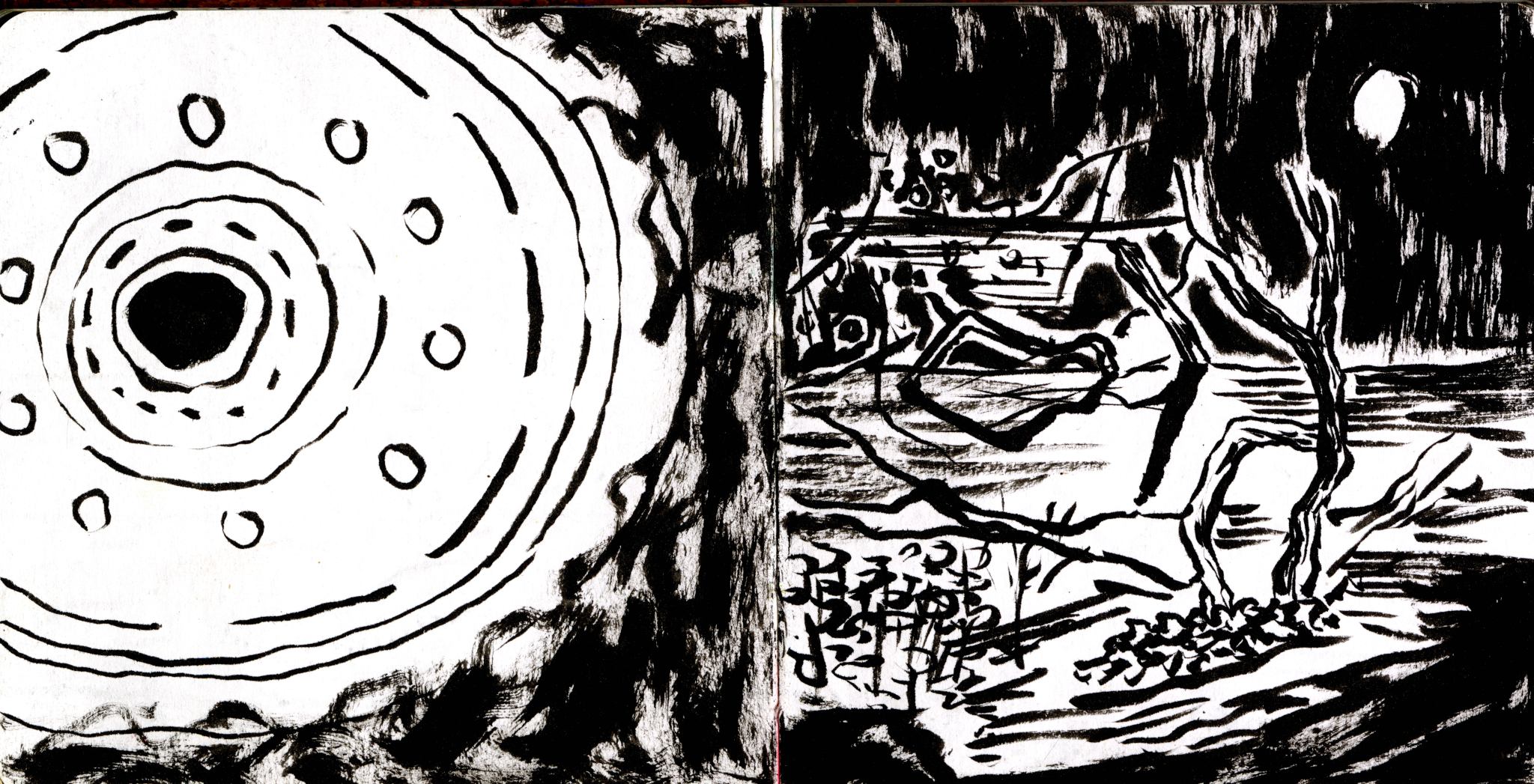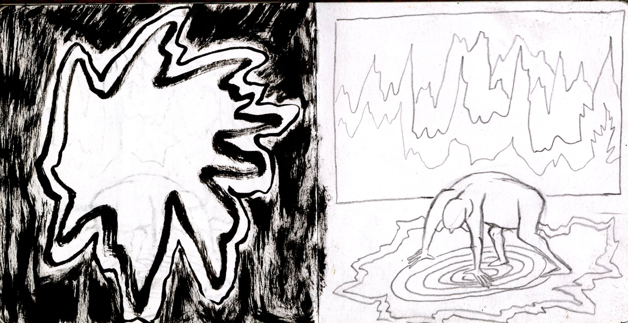 Une série de trois dessins automatiques et intuitifs faisant jaillir l’imaginaire et l’inconscient.
