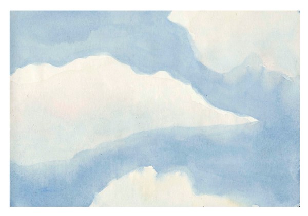 Nuages, aquarelle sur papier, dessin original tiré d’un carnet de voyage format A5 (14,8 x 21 cm), 2022