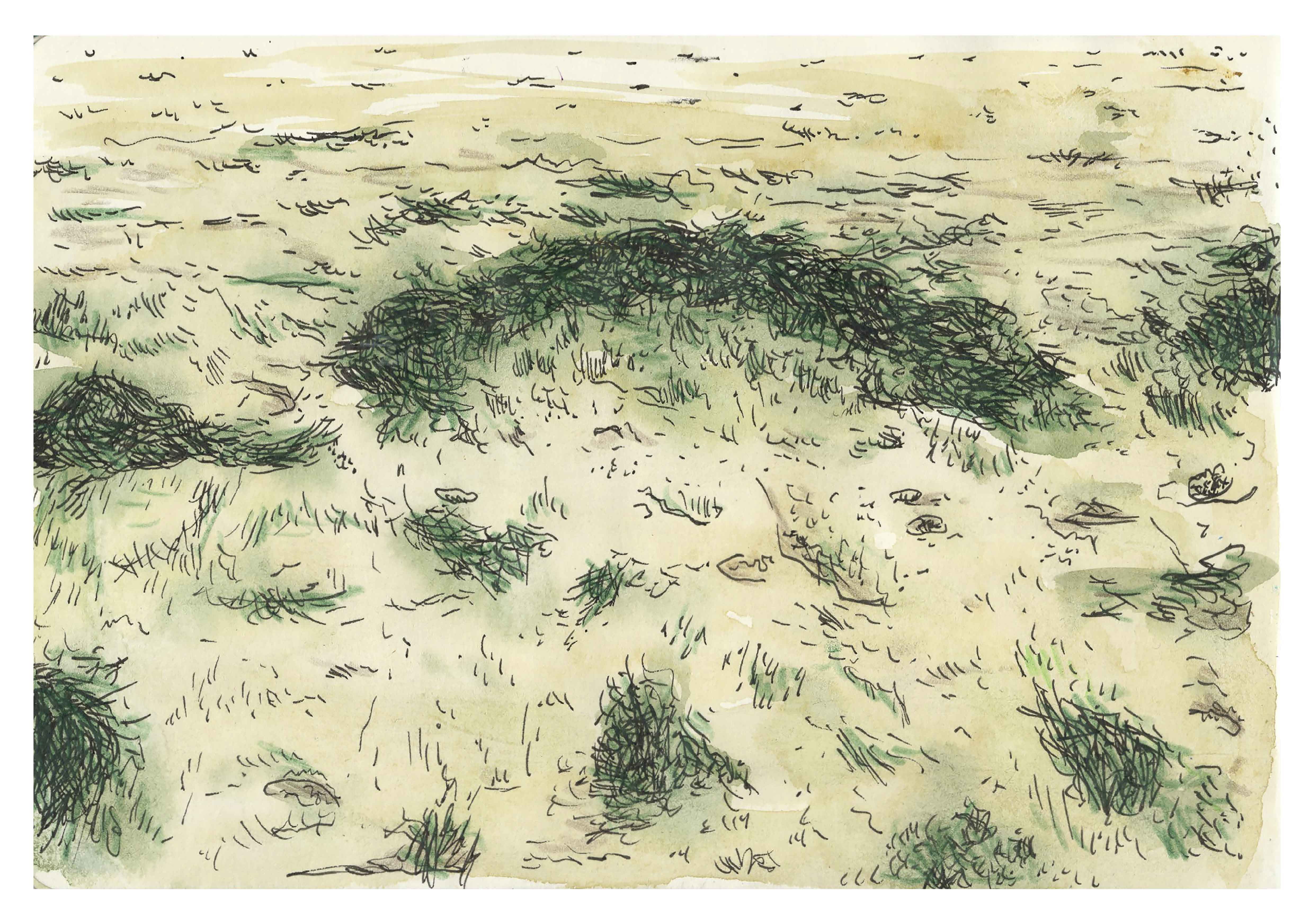 Algues, aquarelle, feutre et crayons de couleurs sur papier, dessin original tiré d’un carnet de voyage format A5 (14,8 x 21 cm), 2022