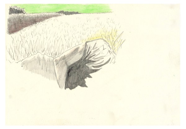 La sieste, crayons de couleurs et graphite, dessin original tiré d’un carnet de voyage format A5 (14,8 x 21 cm), 2022