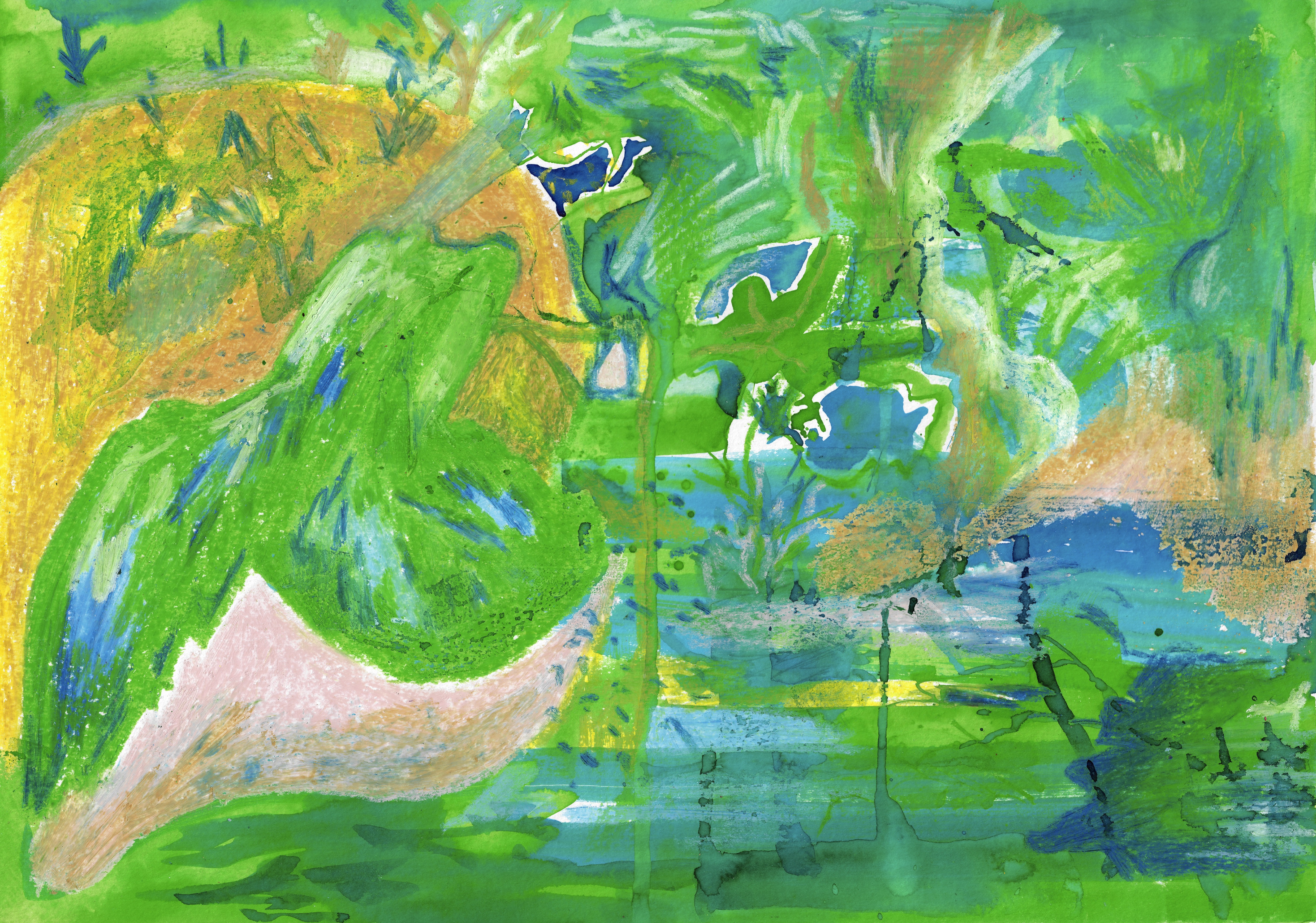 Sans-titre, aquarelle, encre et pastel sur papier 200g, 42 x 29,7 cm, 2024