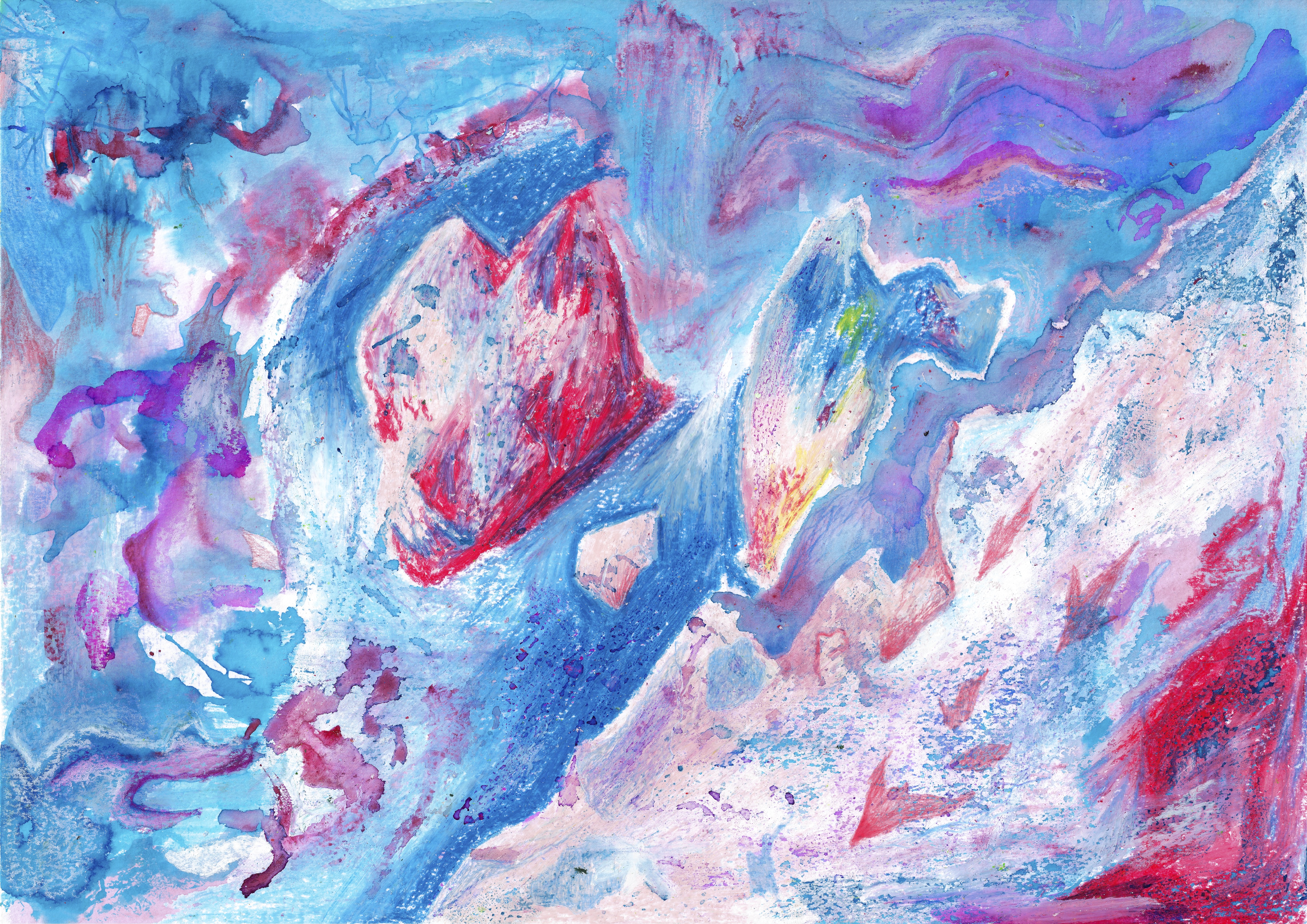 Sans-titre, aquarelle, encre, crayons de couleurs et pastel sur papier 200g, 42 x 29,7 cm, 2024
