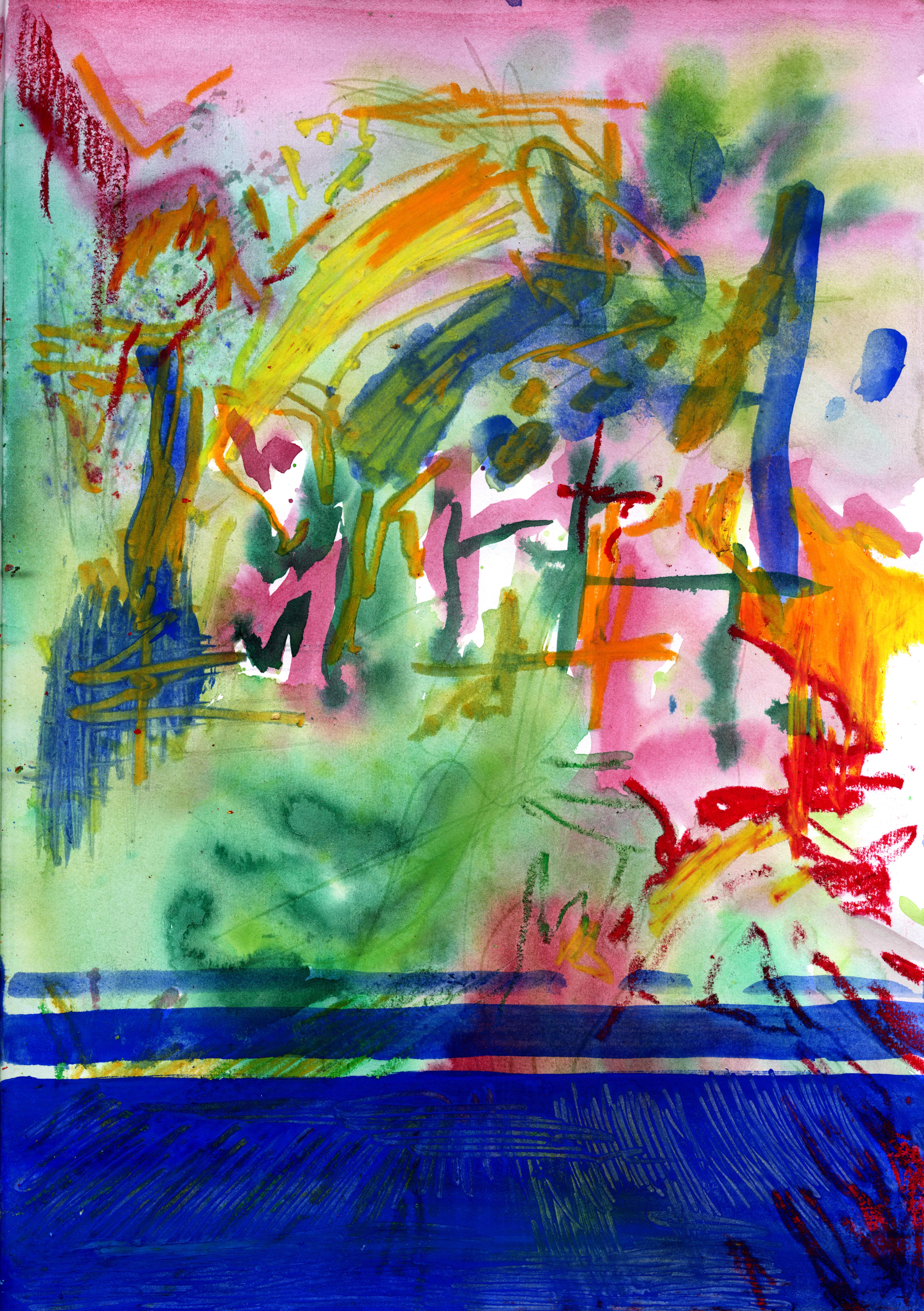 La folie heureuse, reproduction sur papier d’un dessin sur carnet, pastel, encres, acrylique, papier 200 g, 84,1 x 59,4 cm,, 2025