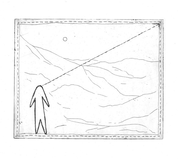 L’observateur et l’image, gravure eau-forte, 12 x 14,5 cm, 2024
