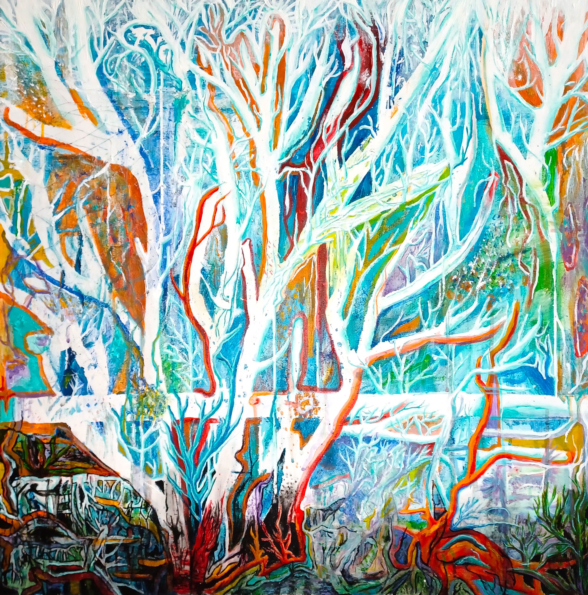 Peinture abstraite, acrylique sur carton, 76 x 52 cm, 2026